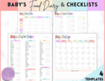 The Food Diary is a daily log for tracking your baby’s food intake: