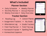 - Lesson Planning: Sections for planning individual subjects, noting curriculum materials, and tracking assignments.
